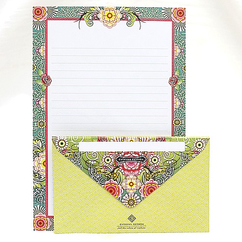 Papier listowy, Papeteria – kolorowe kwiaty, Catalina Estrada – 10 kopert 10 papierow listowych